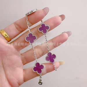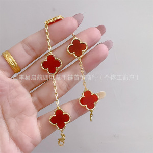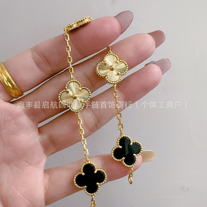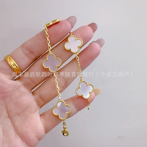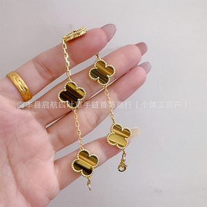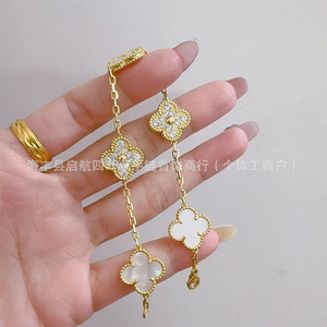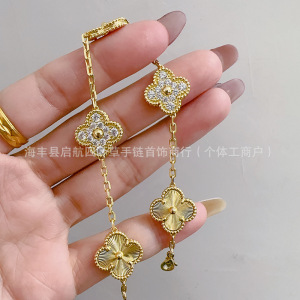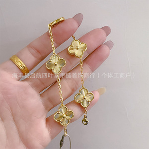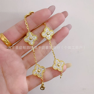 瘦花V金高版本四叶草五花手链CNC手链抖音热卖直播爆款不掉色