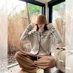 曾小咸 早秋灰色费尔岛毛衣外套女秋冬外穿宽松慵懒针织开衫上衣