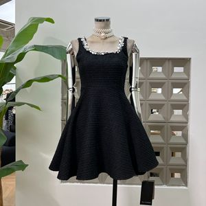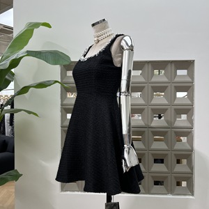 亚马逊英伦约会轻奢编织小香风方领高腰伞裙经典优雅系收腰连衣裙