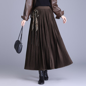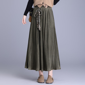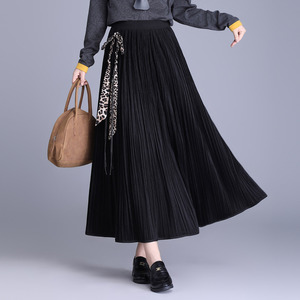 25秋季新款大码胖M韩版秋冬丝绒百褶半身裙高腰显瘦百搭A字中长裙
