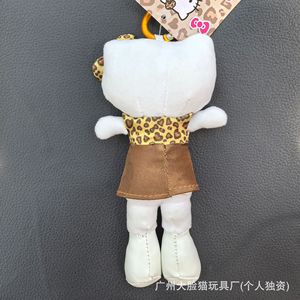 日系三丽鸥NIC豹纹黑皮爱心扣长腿kitty包挂件毛绒凯蒂猫kt钥匙扣