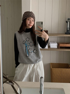 苏奈 甜美立体小花35%羊毛马甲女秋季休闲叠穿百搭上衣tableblue