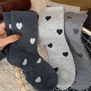 爱心袜子女中筒ins潮百搭高颜值日系女士可爱纯色秋冬款中筒新款