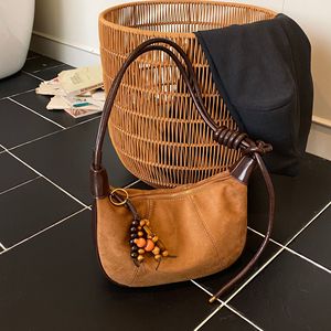 法式小众复古麂皮绒饺子包2025秋冬新款时尚磨砂单肩包通勤腋下包