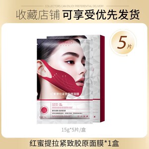 韩伦美羽红蜜胶原蛋白面膜保湿滋润提拉紧致去双下巴挂耳面膜批发
