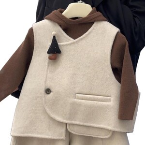 儿童春秋装套装2025新款复古英伦风呢子马甲外套女童休闲直筒裤子