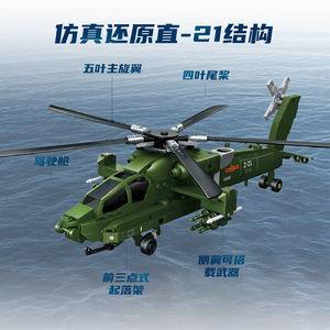 启蒙奇妙积木23206军事直21武装直升机组装模型男孩拼装玩具礼物