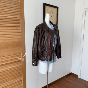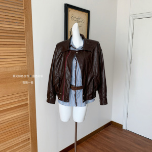 美式棕色高级感皮衣外套女2025秋季新款设计感短款夹克