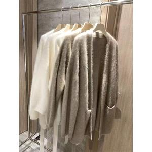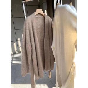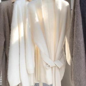 奶fufu白色水貂绒针织开衫女秋秋中长款软糯毛衣外套宽松慵懒上衣