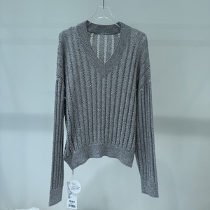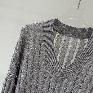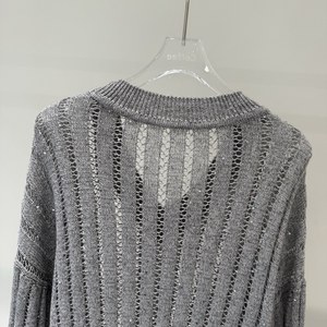 2025秋季新款女装韩版宽松显瘦镂空柔羽灰针织衫毛衣1GA133101