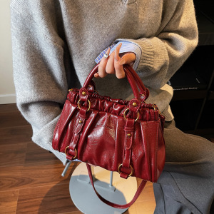 高级感复古褶皱包包女2025新款秋冬百搭大容量时尚超火手提斜挎包