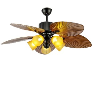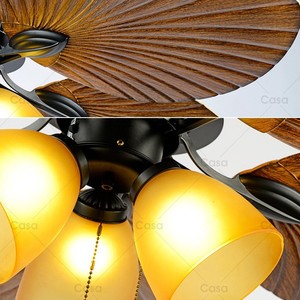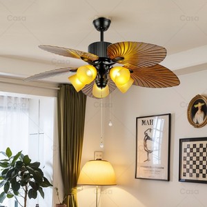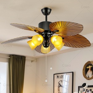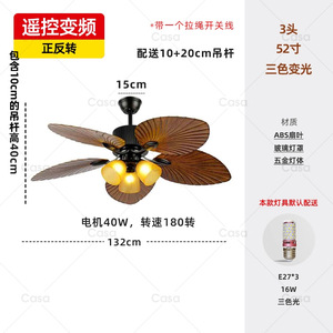 南洋芭蕉叶风扇吊灯卧室客厅美式复古怀旧变频卧室带灯电扇遥控灯