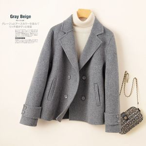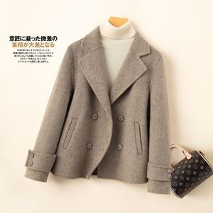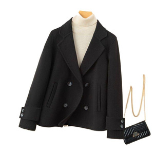 春秋新款羊绒大衣女西装领小个子短款纯羊毛高端双面呢外套双排扣