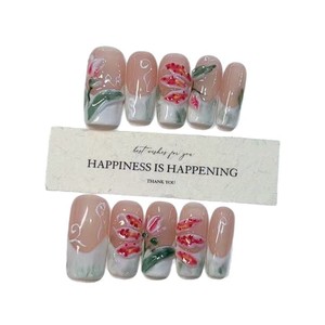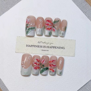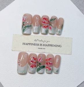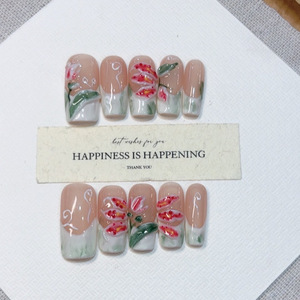 黛月达 纯手工穿戴甲秋冬新款B345全手绘雕花气质外贸款美甲贴片