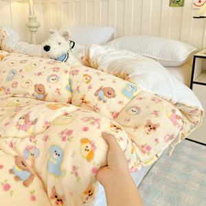 A类卡通儿童被芯秋冬加绒棉被单人宿舍春秋被冬季加厚羊羔绒被子