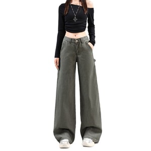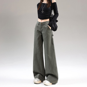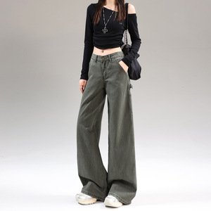 美式复古阔腿工装牛仔裤女2025年春秋季新款低腰宽松直筒阔腿裤子