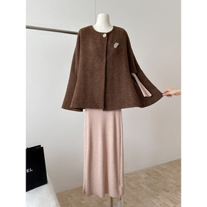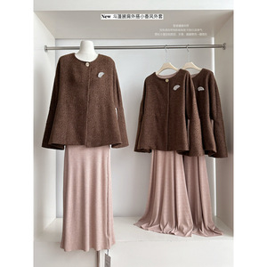 巨好看的早秋季上衣女2025新款斗篷披肩外搭小香风外套+连衣裙