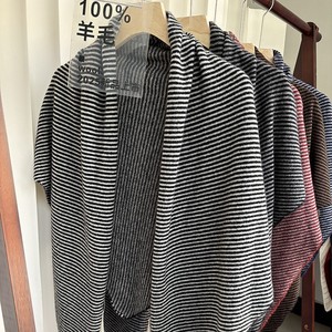 100%羊毛针织围巾女2025新款细条纹高级感时髦保暖三角大披肩保暖