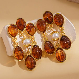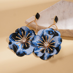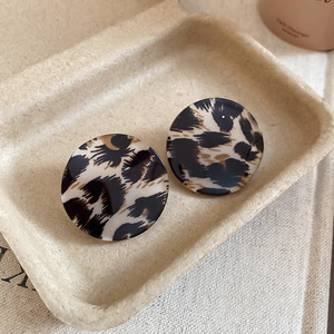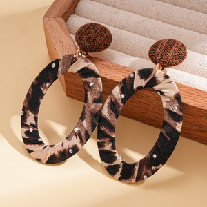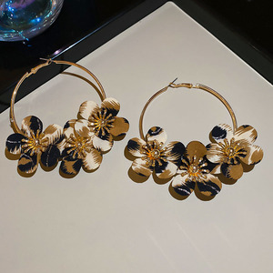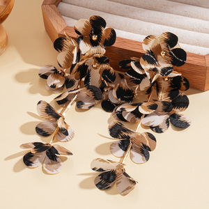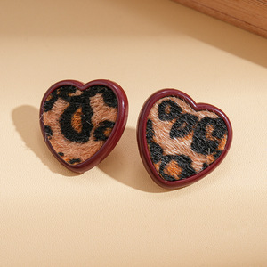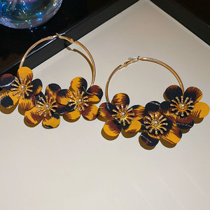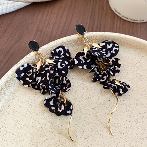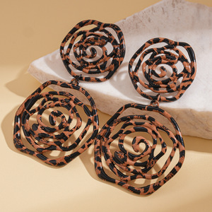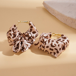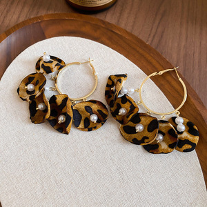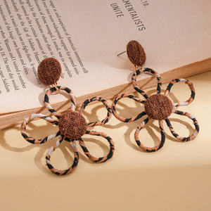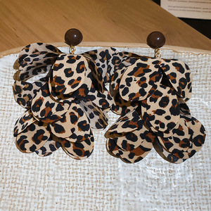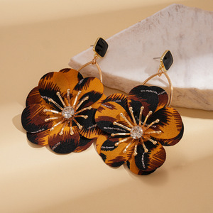 欧美跨境咖色布艺花朵豹纹耳环轻奢高级感耳钉夸张时尚百搭耳饰女