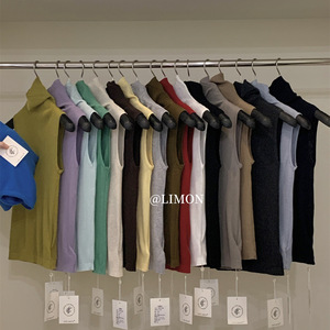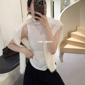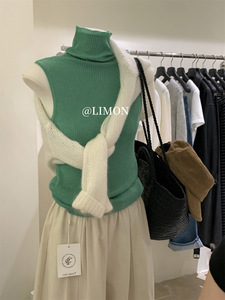 thelimon柠檬绿茶2025秋季新款韩系纯色高领无袖背心针织衫女上衣