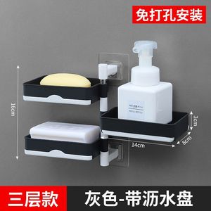 肥皂盒免打孔香皂架卫生间置物架旋转壁挂式双层沥水肥皂盒香皂盒