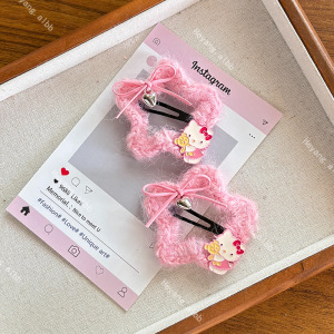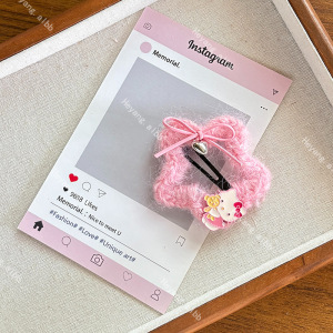 卡通可爱秋季新款粉色毛绒星星发夹甜美少女心刘海侧边夹bb夹发饰