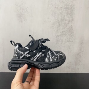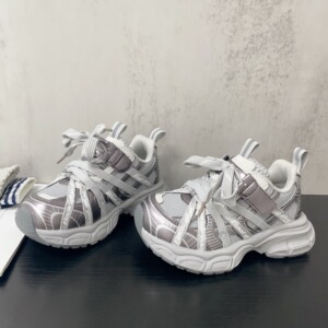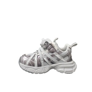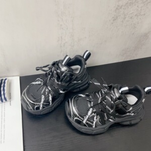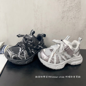 儿童韩范风拼色巴黎加绒老爹鞋2025冬季新品男女童字母绑带运动鞋