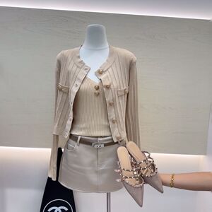 新款气质打底香风吊带金属长袖上衣针织显瘦两件套开衫修身