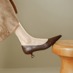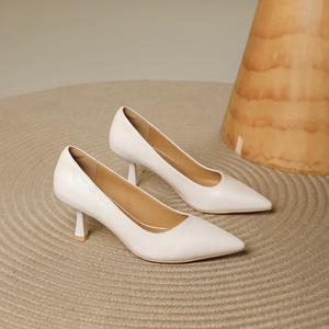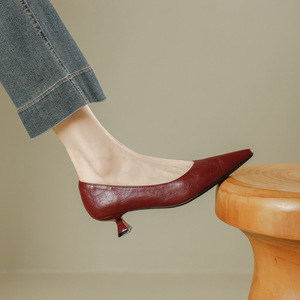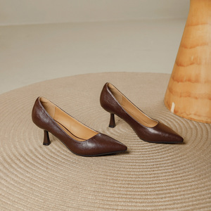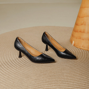 尖头浅口软皮单鞋女秋季新款显瘦细跟简约气质百搭职业通勤高跟鞋