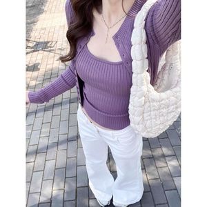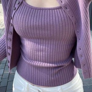 韩系减龄套装女春秋新款长袖纽扣宽松针织开衫纯色修身内搭两件套