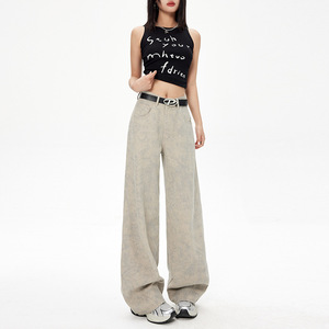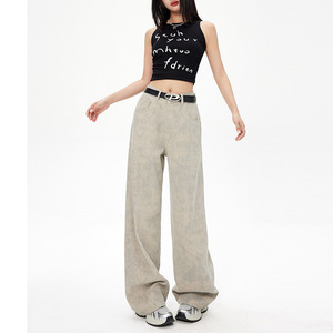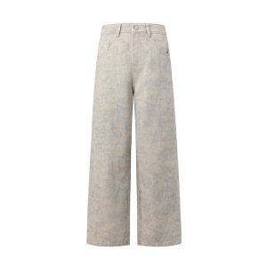 美式窄版直筒裤女2025新款秋季扎染印花小众设计感复古阔腿牛仔裤