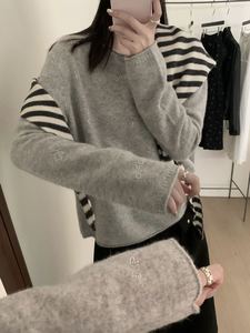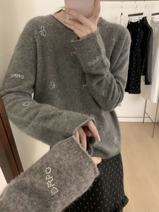 之言25秋冬季女款韩系氛围感百搭纯色镶钻蝴蝶结贝熊绒针织衫毛衣