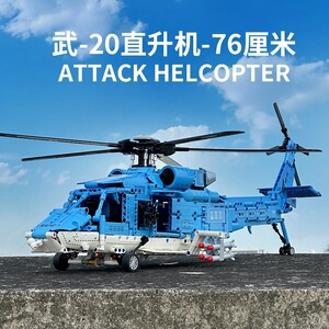 跨境鱼鹰直升机积木拼装玩具直20战斗机军事飞机模型儿童益智男孩