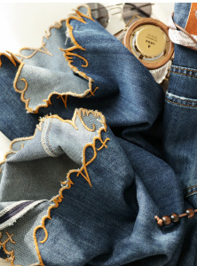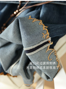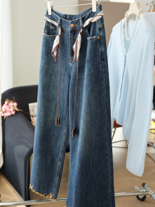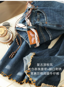 复古游牧风丝巾腰带脚口刺绣高腰A字直筒阔腿牛仔裤女秋新款25