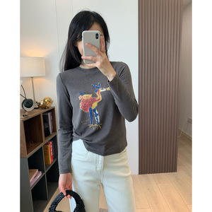洋气配色!cute印花 简约圆领柔软舒适休闲减龄长袖T恤女秋新款25
