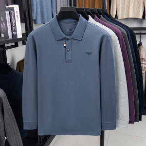 春秋季2025新款男士纯棉长袖上衣翻领POLO衫刺绣花商务男装休闲