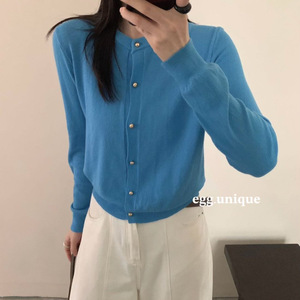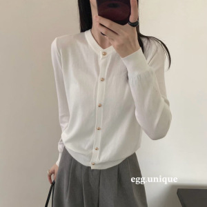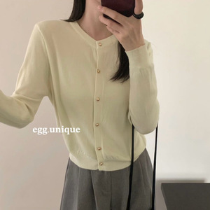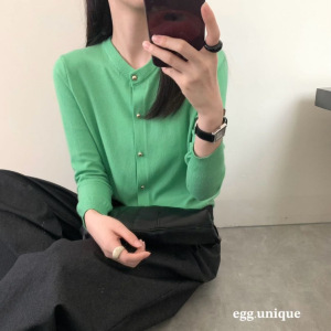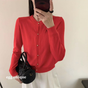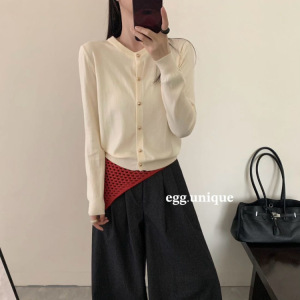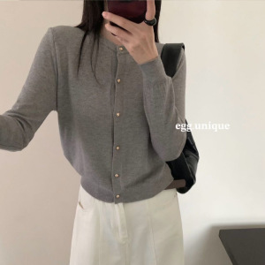 韩系小众14色羊毛小金扣开衫名媛金扣设计感高级感圆领开衫外套秋