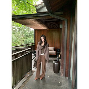 ASM ANNA/通勤风 搭真丝羊毛混纺休闲裤慵懒松紧高腰直筒阔腿裤女