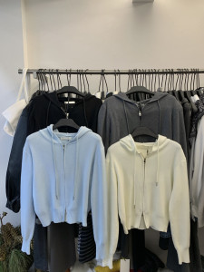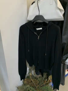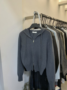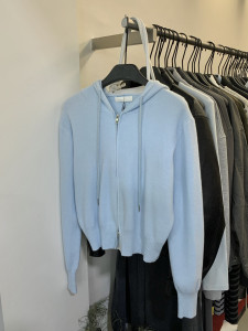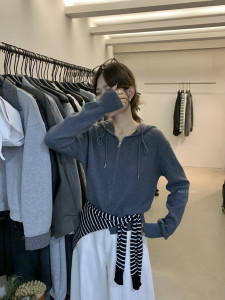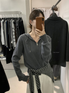 经典连帽针织开衫【MISS密思家】休闲简约超百搭双头拉链毛衣0829