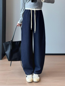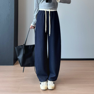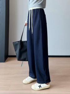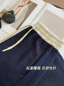 深靛蓝镰刀裤 !面料显瘦撞色高腰阔腿直筒牛仔裤女早秋新款2025