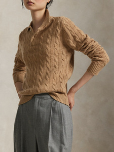拉夫25年秋季绞花编结Polo针织衫长袖翻领羊毛毛衣宽松女 RL27244