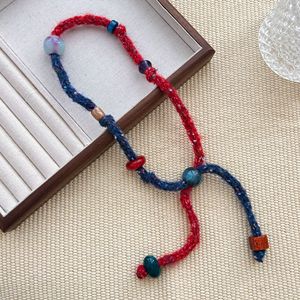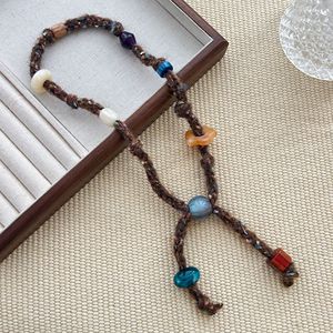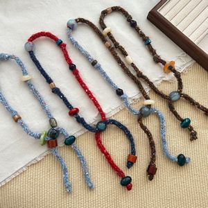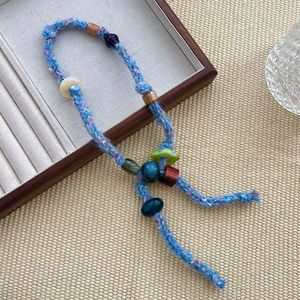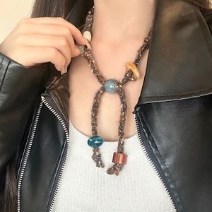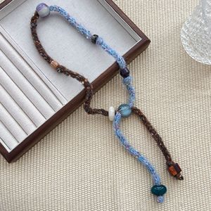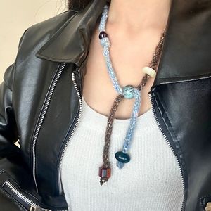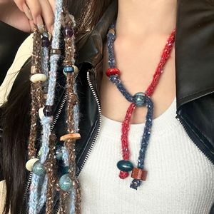 原创设计彩色针织毛线串珠抽拉项链女款独特设计感毛衣链叠戴配饰