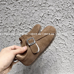 女童勃肯鞋真皮复古单鞋2025秋季新款儿童皮鞋皮扣韩版女孩休闲鞋