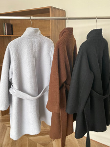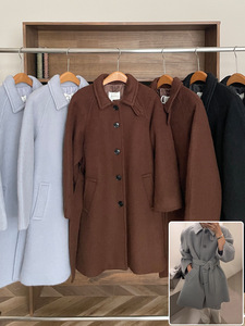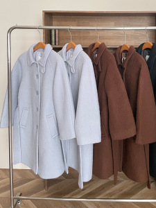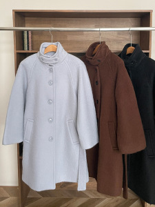 现H 雾霾蓝收腰毛呢大衣女秋冬气质通勤保暖外套