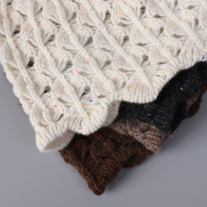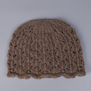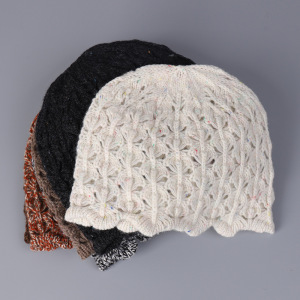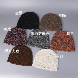 新款韩系镂空针织纯羊毛包头帽女士冬季保暖波浪边冷帽百搭帽子