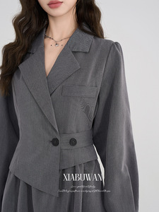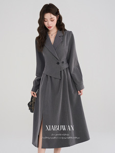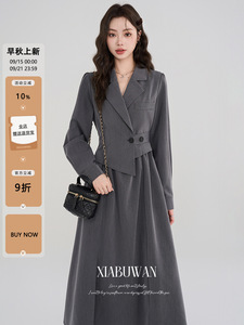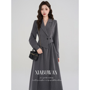 夏不晚法式西装连衣裙女秋冬季感裙子设计感小众气质收腰长裙