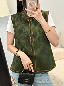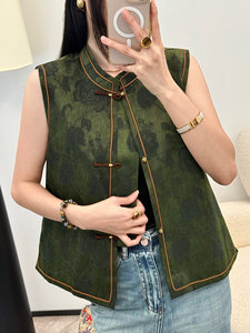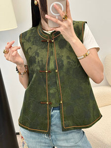 新中式原创油丝香云纱精致手工盘绳马甲2025秋季复古盘扣坎肩上衣