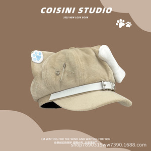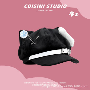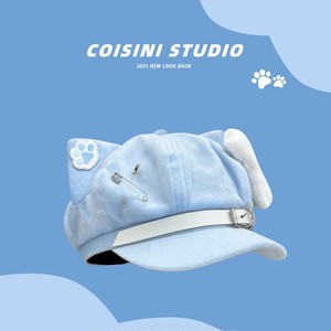 y2k亚文化蓝色小猫耳朵贝雷帽女可爱个性小众宅文化云朵帽显脸小