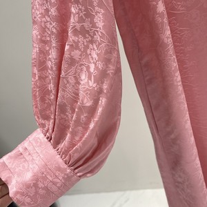 2025秋季新款时尚百搭 立领单排扣长袖真丝提花宽松连衣裙批发