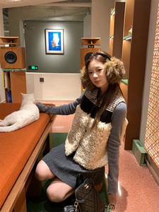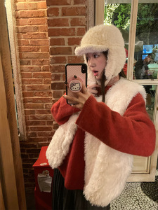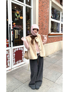 【现货】im向 鬼马艺术生 奥粒绒内里羊羔毛马甲女叠穿毛毛马夹